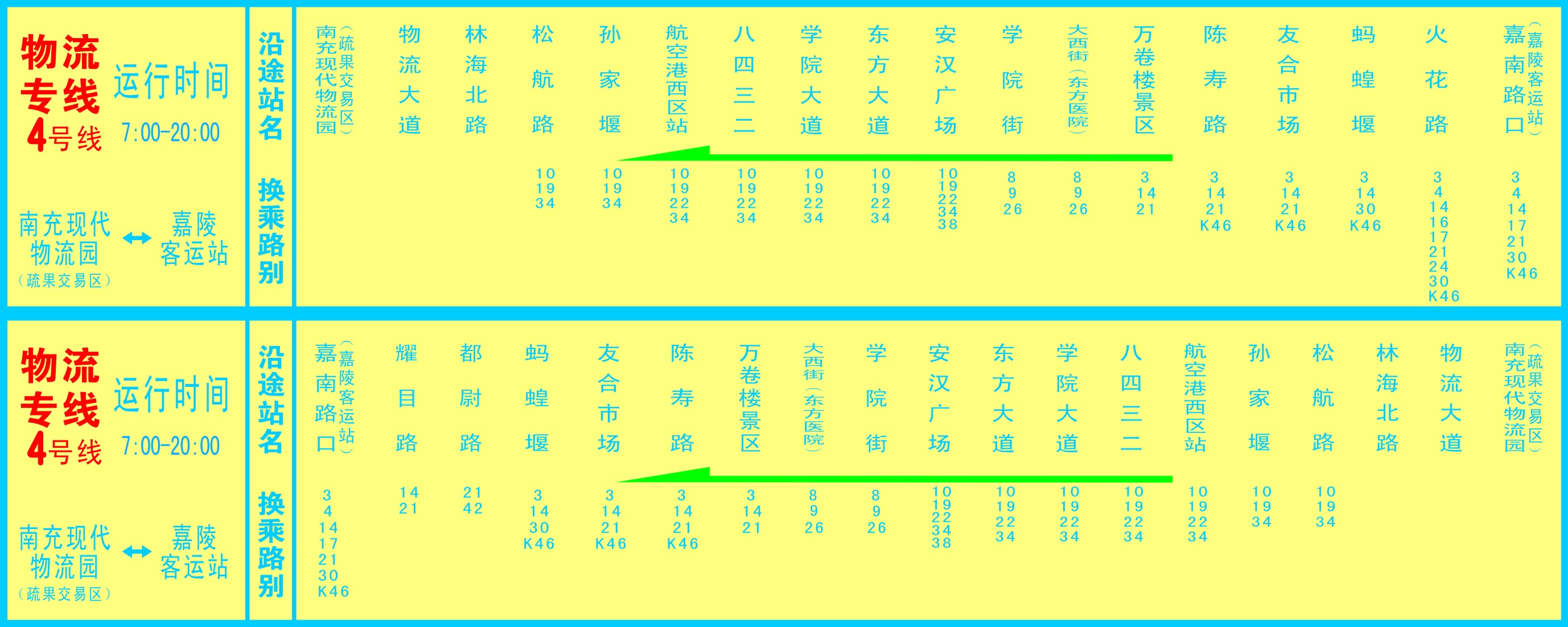 物流專線4號線:南充現(xiàn)代物流園----嘉陵客運站