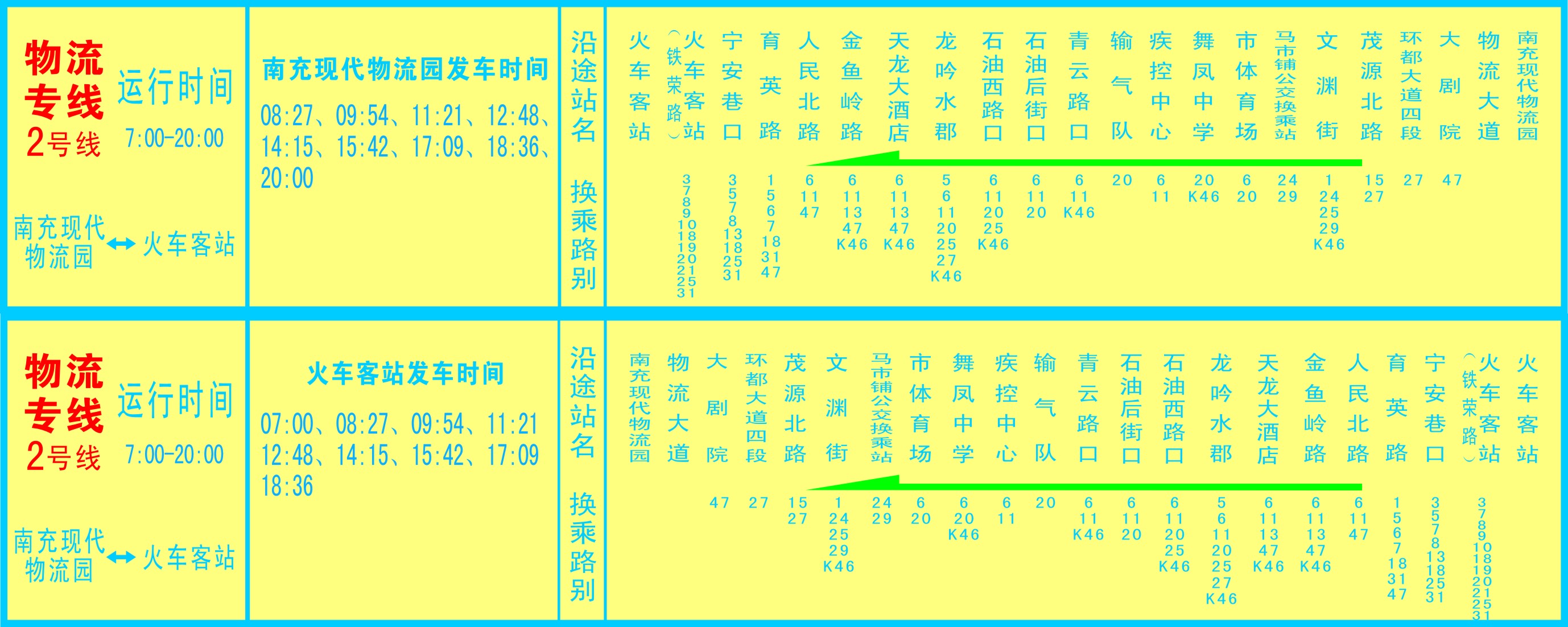 物流專(zhuān)線(xiàn)2號(hào)線(xiàn):南充現(xiàn)代物流園----火車(chē)客站