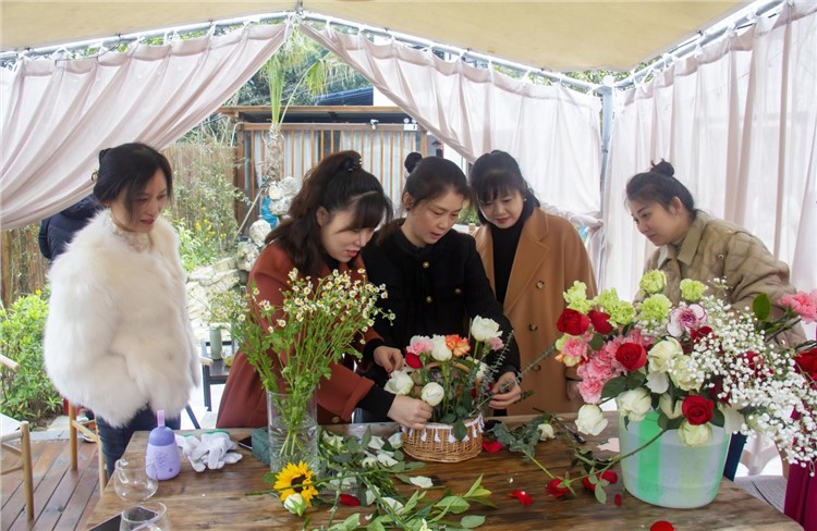 插花是國人生活藝術(shù)的一種表現(xiàn)形式,指將花草樹木的枝、葉、花朵,在花器中重新布置,以此煥發(fā)新興之美。人們借著插花的名義,以花枝展情韻,展現(xiàn)自身的高雅情懷以及抒發(fā)對生活的熱愛。潔白無瑕的白桔梗,清新淡雅的康乃馨,濃烈絢爛的紅玫瑰,金色活潑的向日葵……隨著一束束色彩斑斕的鮮花被依次擺放在桌面上,花藝·茶藝沙龍活動的序幕就此展開。