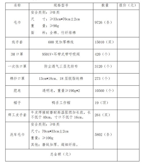 2023年勞保用品采購(gòu)項(xiàng)目預(yù)算價(jià)格公開(kāi)征詢公告